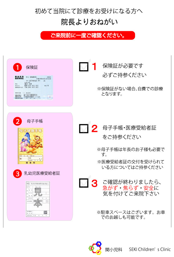 ※関小児科へまだお越しになられたことのない方への注意事項を記載しております。ご来院前に 1度ご確認ください。